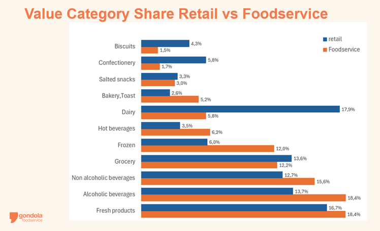 Pour un fabricant ou un grossiste, lire ces écarts n'est pas un exercice académique. C'est un signal de mise en marché. Une catégorie qui surperforme en foodservice mérite une stratégie commerciale dédiée au canal, un format adapté, une logique de service différente. Une catégorie moins représenté dans le foodservice, comme la confiserie (1,7 %), doit analyser les canaux où il y a de nouvelles opportunités qui émergent, et le cross-selling avec les catégories qui fonctionnent.
